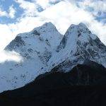 - Trekking Dag 4. Namche naar Tengboche. Van Namche Bazaar in ca. 5 uur naar Tengboche (3.867 meter). Vanuit Namche volgt meteen een steile klim omhoog en onderweg geniet je van het adembenemende uitzicht op de Thamserku en Kusum Kangrib. Diep beneden is de Dudh Koshi rivier nog te herkennen; vanaf dit punt ben je volledig omgeven door ‘s werelds hoogste bergtoppen. Als je omhoog kijkt, zie je de kolossale wand van de Lhotse-Nuptse en de Mount Everest die daar nog net bovenuit steekt. Na een lichte afdaling eindigt het bergpad en lopen jullie via Trashinga naar Phunki Tenga. Het geluid van het kolkende water van de Dudh Koshi lijkt jullie welkom te heten voordat je dan eindelijk arriveert bij het legendarische klooster van Tengboche. Overnachting in Tengboche. (B,L,D)